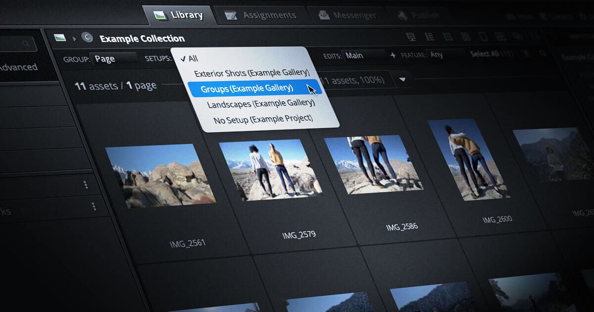 • Collection views now feature the Setups menu, allowing assets to be filtered or grouped according to their Setups in their source Projects.