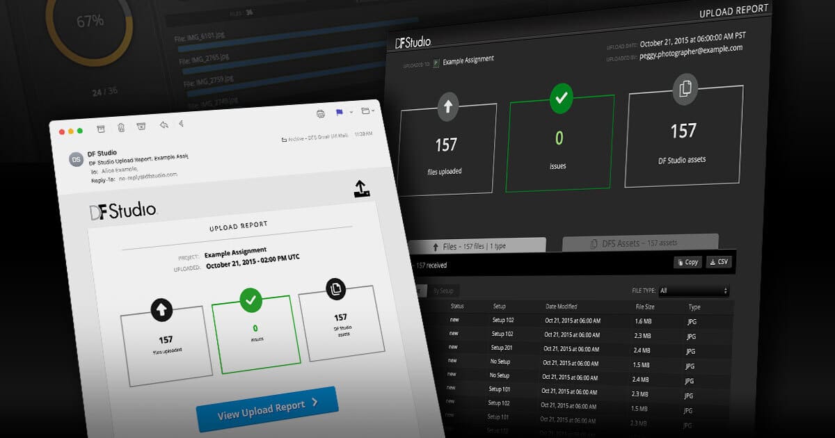 Detailed reports are automatically generated for every upload performed, providing verification of the outcome and information about assets.